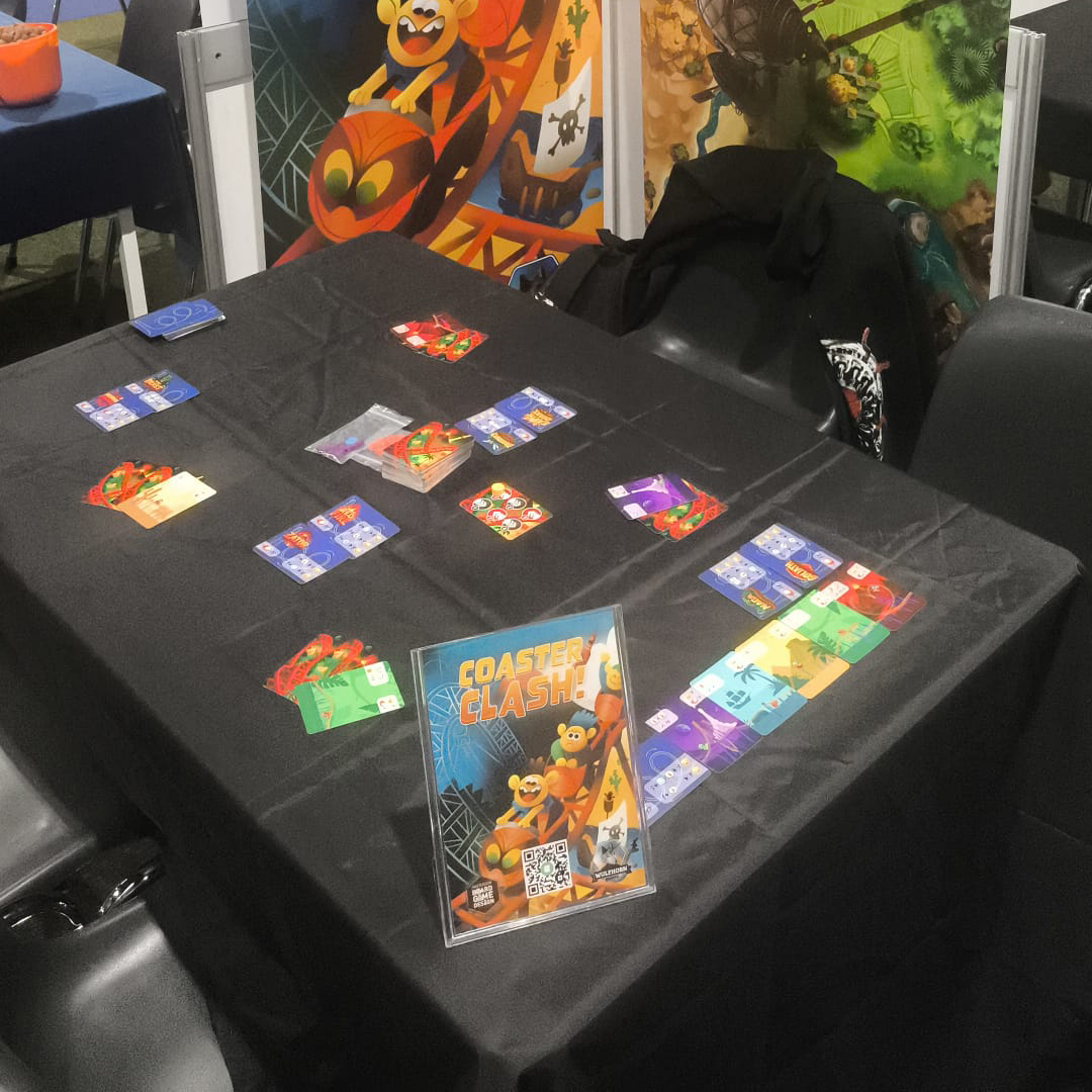Coaster Clash! is a semi-co-operative Card-Drafting game in which you build a rollercoaster with the neighbor to your left; as well as the one to your right.