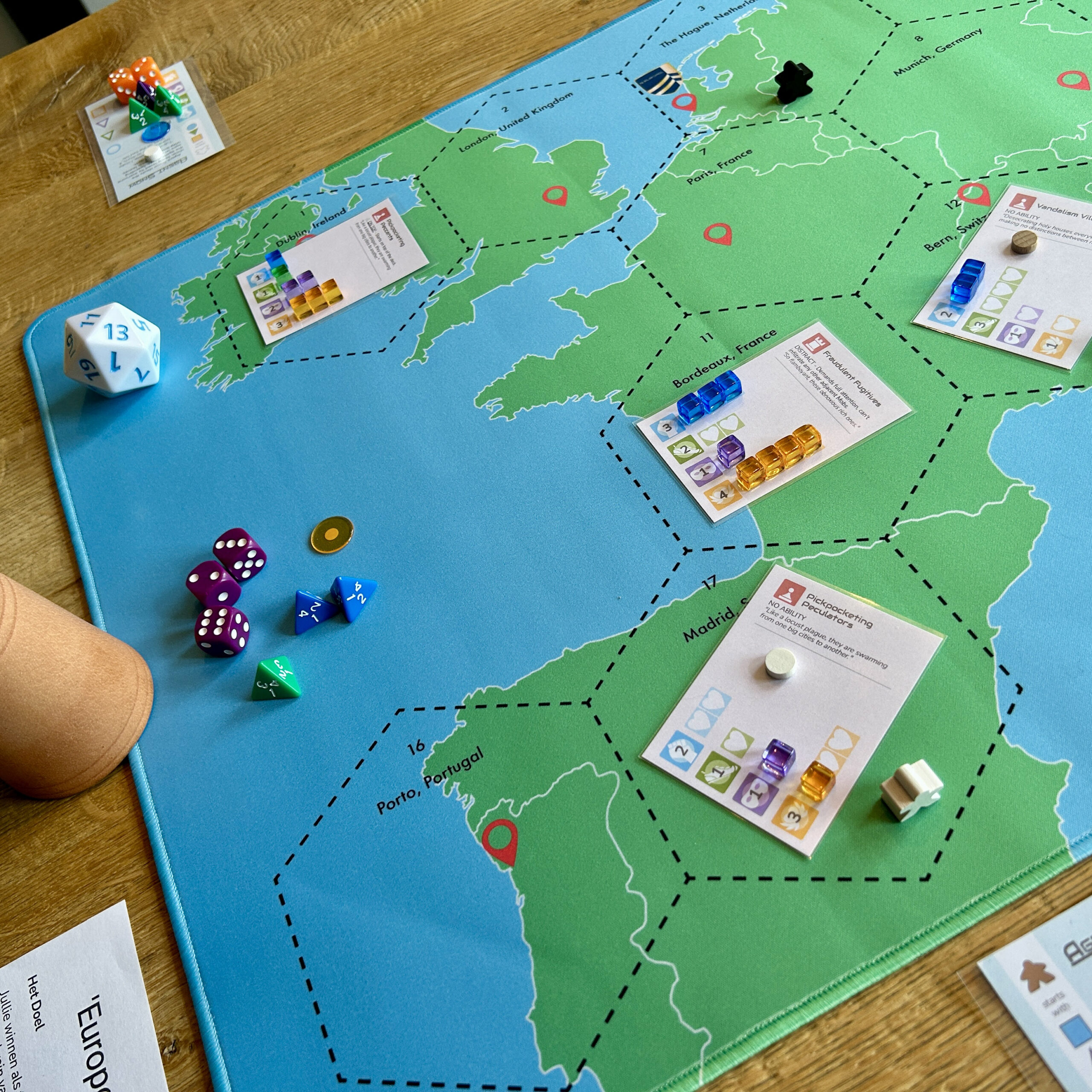 Rummikub op wereldschaal. Met Rummiglobe combineer je niet alleen nummers en kleuren maar ook buurlanden, politieke relaties, historische banden en zelfs bondgenootschappen.