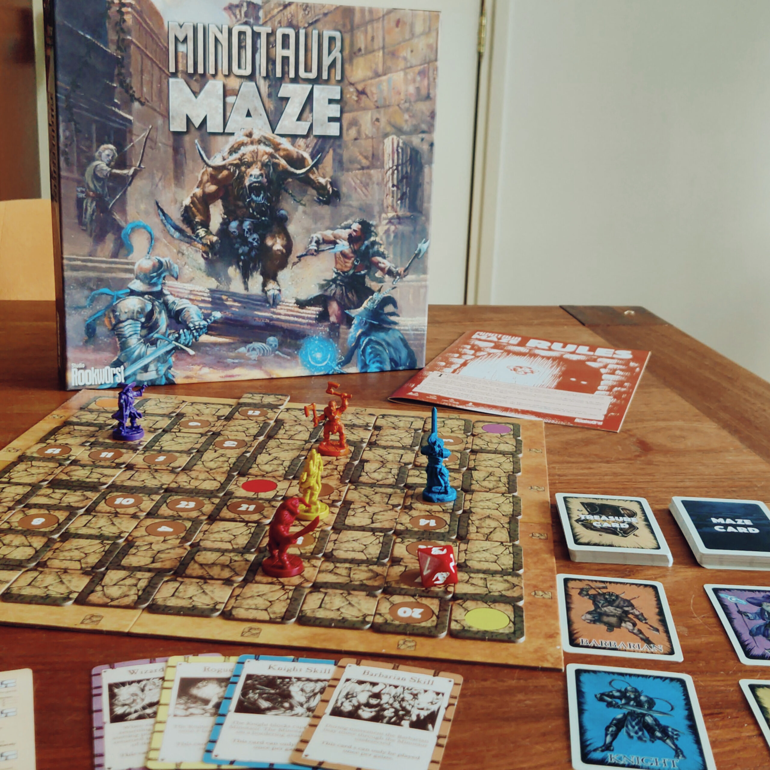 Minotaur Maze is a tactical board game for 2–4 players, where you choose one of four unique heroes and battle each other in a treacherous maze. Collect all your treasure before your opponents, but be warned: the Minotaur is also on the loose!