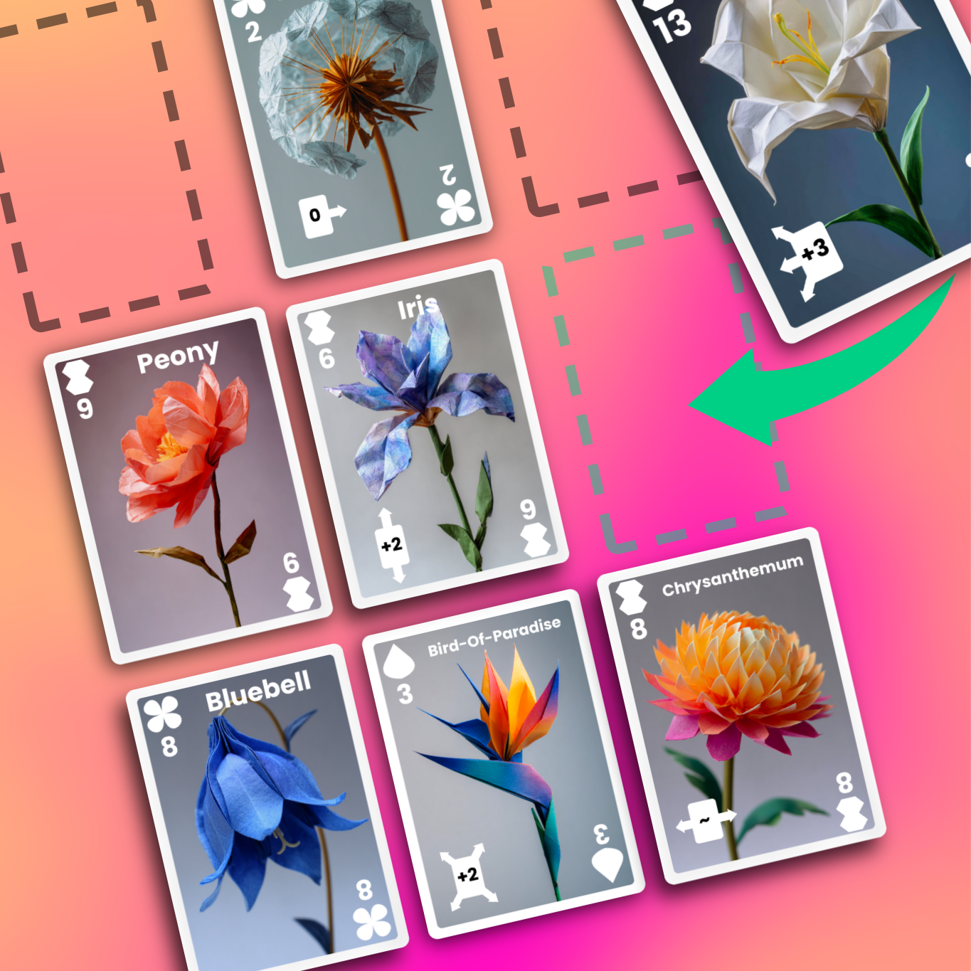 Petals is a trick taking game where users create beautiful Bouquets with the cards they’ve played.